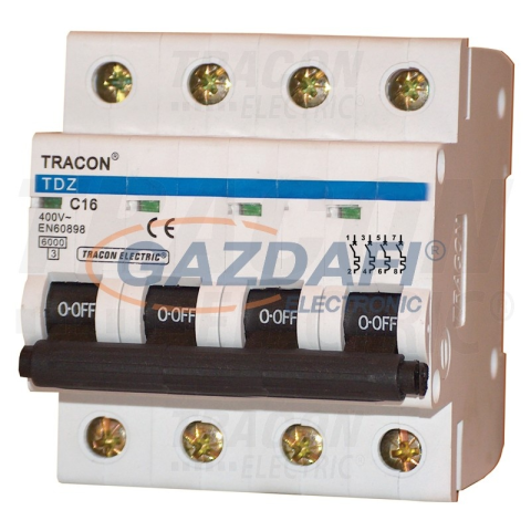 Tracon főkatalógus 2024-2025 TRACON főkatalógus TRACON TDZ-4B-63 általános leírása:A kismegszakítók más néven automaták az elektromos hálózatok egyik legfontosabb védelmi elemei. Feladatuk, hogy túlterhelés vagy rövidzárlat esetén automatikusan megszakíts