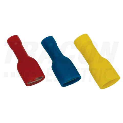 1 kép TRACON Teljes szigetelésű rátolható csatl. Hüvely 2,5mm2, 6,3×0,8 mm, sárgaréz, kék