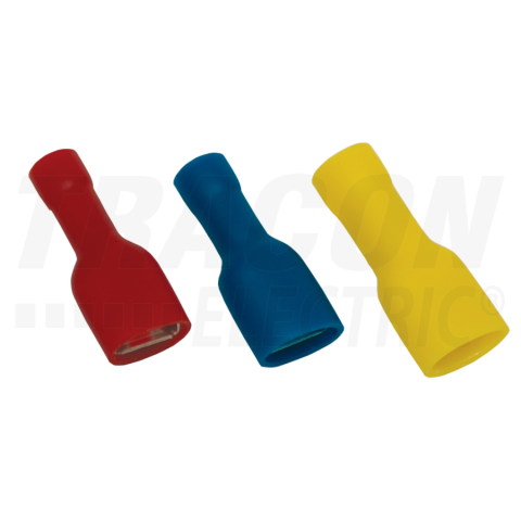 1 kép TRACON Teljes szigetelésű rátolható csatl. hüvely, sárgaréz, piros1,5mm2, 4,8×0,8mm