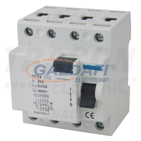 TRACON TFV4-16300 Áram-védőkapcsoló, 4 pólusú 16A, 300mA, 6kA, AC villanyszerelés 1 kép