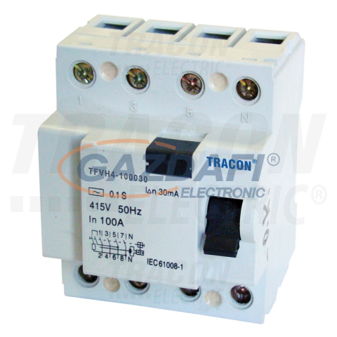 1 kép TRACON TFVH4-100300 Áram-védőkapcsoló, nagyáramú, 4 pólusú 100A, 300mA, 6kA, AC
