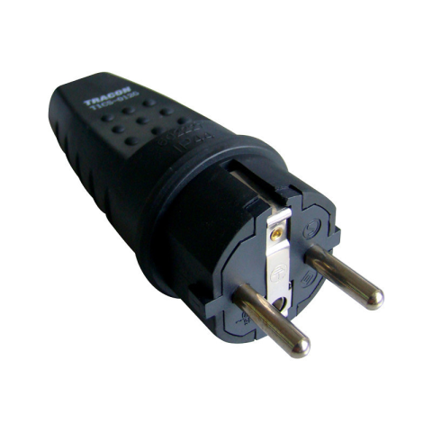 Dugvilla 2P+F 16A egyenes 250V fekete gumi csavaros IP54 TRACON