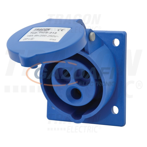 1 kép TRACON TICS-313 Beépíthető ferde ipari csatlakozóaljzat 16A, 250V, 2P+E, 6h, IP44