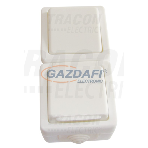 1 kép TRACON TR-PH08V Falon kívüli váltókapcsoló+csatlakozóaljzat, függőleges 16A/250VAC, IP54, (106)