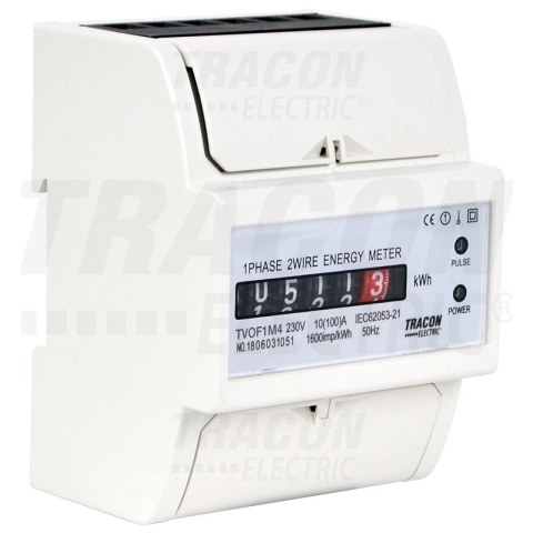 1 kép TRACON TVOF1M4 elektromechanikus fogyasztásmérő 1 fázis 10(100)A, 4,5 modul
