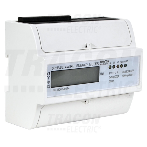 1 kép TRACON TVOF37 digitális fogyasztásmérő 3 fázis 10(100)A, 7 modul