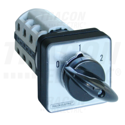 1 kép TRACON Választókapcsoló, 0-1-2400V, 50Hz, 125A, 2×4P, 30kW, 88×88mm, 60°