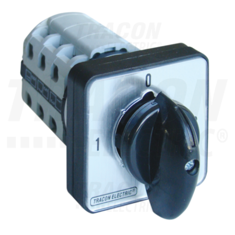 1 kép TRACON Választókapcsoló, 1-0-2400V, 50Hz, 32A, 2×3P, 11kW, 64×64mm, 90°