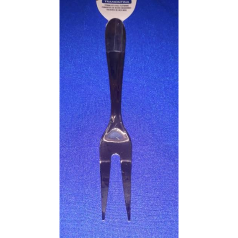 Rozsdamentes acélból készült kétágú tálalóvilla. Teljes hossza: 24,5 cm. Mosogatógépben mosható. Brazil termék.