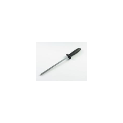Műanyag nyelű fenőacél kézvédővel, mely a kések élének megőrzésére való.