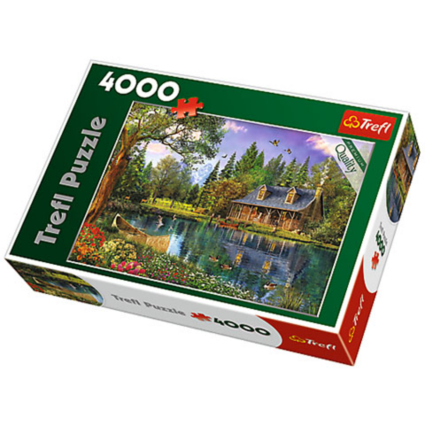 Fent a hegyekben, a fenyőerdők mélyén távol a város zajától igazán kikapcsolhat és lenyugodhat az ember. Ha mindezt egy tóparton teheti, egy csodálatos vadászházban, akkor tényleg nem kívánhatunk magunknak ennél többet. Ezzel a kirakóssal pont egy ilyen képet készíthetünk magunknak, és miközben mind a 4000 darabnak megtaláljuk a pontos helyét magunk is lenyugodhatunk és