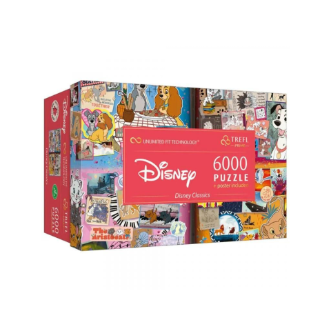 A Disney nagy könyve 6000 darabos puzzle a Trefl prémium minőségű kirakója, amely a Disney klasszikus meséinek varázslatos világát idézi meg egy különleges scrapbook-stílusú kollázs formájában. Ez a puzzle minden Disney-rajongó számára igazi kincs, hiszen a kép a legikonikusabb mesék kedvenc jeleneteit és karaktereit egyesíti egy hatalmas, részletgazdag illusztrációban.