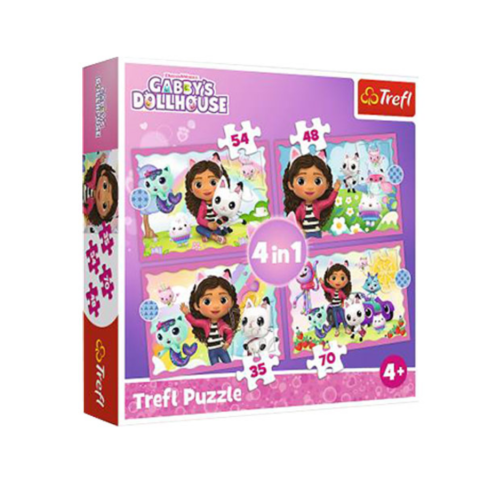 Ez egy csodálatos ajándék lehet bármilyen kislány számára, ugyanis habár csak egyetlenen dobozról beszélünk, benne négy különböző puzzle kapott helyet, ráadásul mindegyik más és más darabszámból állítható össze. Abban azonban mind a négy kirakható kép megegyezik, hogy szereplői a Gabi babaháza mesesorozatból vannak és mindegyik mosolyt csal majd a kicsik szájára. A