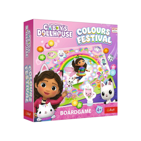 Színeskedjetek Gabi babaházában a "Colours Festival" társasjátékkal, ahol a kicsik Gabi és állatbarátai társaságában fedezhetik fel a színek világát! Ez a játék, amelyet a népszerű Netflix sorozat ihletett, tele van vidám színekkel és aranyos karakterekkel, így a gyerekek nemcsak jól szórakozhatnak, hanem fejleszthetik a színmegkülönböztető és együttműk