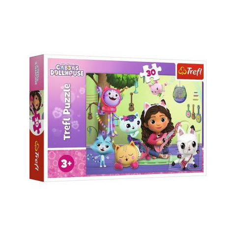 30 darabos Trefl Gabi és a bájos háza puzzle 18301 30 darabos Gabi és a bájos háza Trefl 18301 Gabi és a bájos háza egy 30 darabos Trefl kirakó, melynek témája a Gabi macskája háza mese. A kirakók Gabit és a macskákat ábrázolják egy bájos házban. A kir