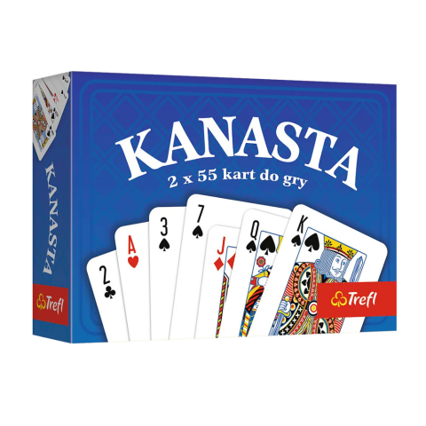Kártyajáték Canasta Trefl 02918 Kártyajáték Canasta Trefl 02918 A Canasta egy hagyományos kártyajáték, amelyben a játékosok célja „meldek” – 3 vagy több azonos értékű, bármilyen színű kártya – összeállítása. A játék két szabványos kártyapaklit használ.