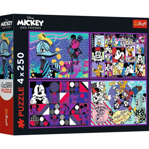 Trefl Mickey egér és barátai 4 x 250 darabos puzzle (13308) puzzle, kirakós árgrafikon