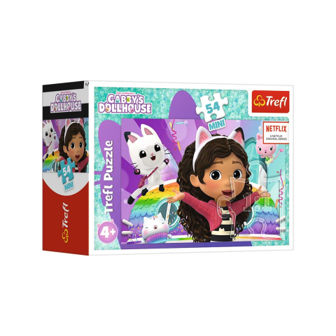 A Netflix-en futó népszerű Gabi babaháza sorozat világát most te is megelevenítheted ezzel az 54 darabos mini puzzlevel! Ez a kedves kis kirakós tökéletes választás a kisebb gyerekek számára, akik már 4 éves kortól élvezhetik a kirakózás élményét. Minden egyes puzzle szett színes, vidám képekkel varázsolja el a gyerekeket, amelyek Gabit és cuki