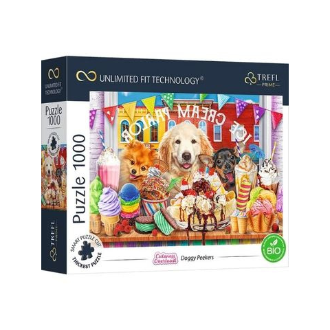 Prémium minőségű, 1000 darabos puzzle, amely cuki kutyákat és finomságokat ábrázol. A vastag anyagból, különleges vágási módszerrel készült elemek tökéletesen illeszkednek egymáshoz, ennek köszönhetően könnyedén mozgatható a teljes puzzle egyben. A Trefl Prime kirakók különlegessége, hogy az azonos méretű kirakókat egyszerűen montázzsá is lehet alakítani, így mindenki létrehozhatja a saját ízlése szerinti képet a nappali falára. A dobozon lévő fólia