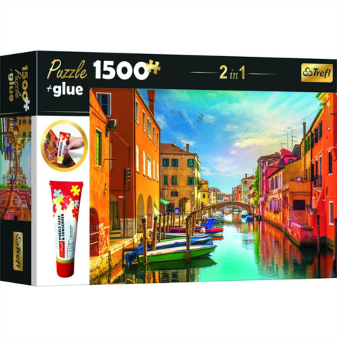 Az 1500 darabos puzzle + ragasztó egy készlet igazi puzzle rajongóknak!TREFL 2 az 1-ben puzzle készlet Olaszország gyönyörű városát Velencét ábrázolja.A rejtvények összerakása remek módja a szabadidő eltöltésének a barátokkal és a családdal, emellett rem