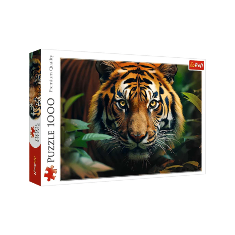 Merüljetek el a vadon misztikus világában a "Tigris a vadonban 1000db-os HQ puzzle kirakó"-val a Trefltől. Ez a lenyűgöző 1000 darabos puzzle egy élethű tigris portrét mutat be, amint tekintetével áthatol a sűrű dzsungel levelein. A részletgazdag és élethű kép hihetetlenül éles és valósághű, így a kirakás során mintha valóban szemtől szembe állnátok ezzel