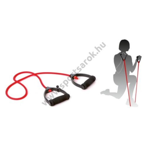 Nyújtó és feszítő gyakorlatokhoz, alsó és felső végtagok izomzatának kíméletes erősítéséhez. Az ergonómikus szivacs fogantyúkkal még könnyebben végezhetjük el a gyakorlatokat. A latex kötél (tube) hossza állítható! Max. hossza: 120 cm, gumi anyag vastagság 0,9 mm, gumicső átmérő: 1 cm. Piros színben rendelhető, erősség besorolás: kíméletes (gyenge).
