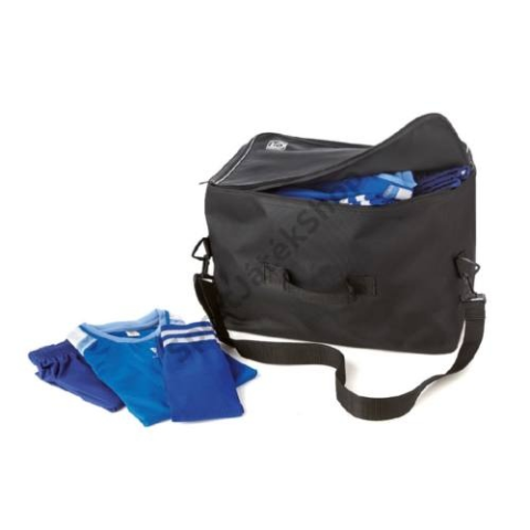 Erősített alapanyagú tárolótáska mezgarnitúrák (kb. 15) és sportszárak részére. Mérete 45×35×30 cm.