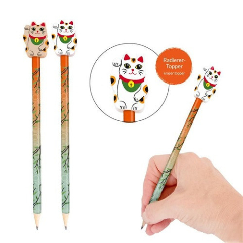 Grafitirón Trendhaus Lucky Cat radírral Fedezd fel a szerencsés macska varázsát ezzel a különleges ceruzával, amely a japán stílust ötvözi a szerencsés macska alakú radíros kupakkal. Ez a ceruza tökéletes választás minden Zen rajongó számára és még szó