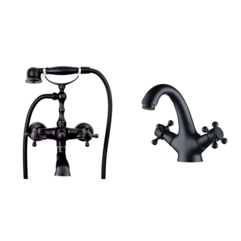 1 kép    TRENDY S Csaptelep Szett, kádfeltöltő zuhanyrózsával és Mosdócsaptelep, antik fekete
