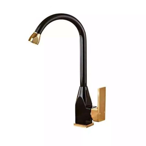 TRENDY S konyhai csaptelep, hattyú stílusú, fekete / aranyszín