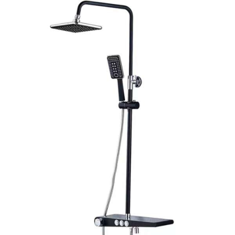 TRENDY Zuhanyoszlop: 3 Funkció, Fekete Design, Beépített Polccal 🚿 Élvezze a modern fürdőszoba kényelmét ezzel a stílusos, fekete TRENDY zuhanyoszloppal!  A három funkciónak köszönhetően mindig megtalálja az Önnek megfelelő zuhanyélményt.  A praktiku...