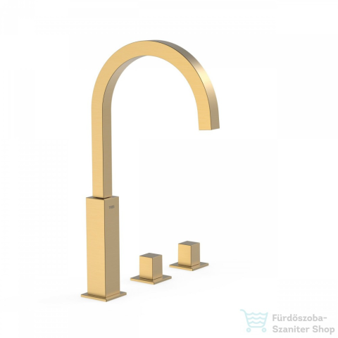 1 kép Tres CUADRO EXCLUSIVE magasított 3 üléses mosdócsaptelep, leeresztő nélkül, matt arany 00810504OM