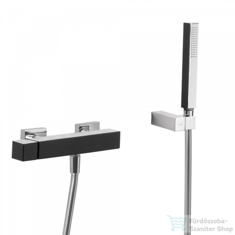 1 kép Tres CUADRO EXCLUSIVE zuhany csaptelep, zuhanyszettel, fekete/króm 607167