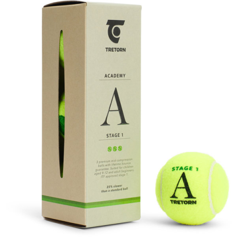 Teniszlabda - versenyekre, ITF által jóváhagyott, bármilyen felületre alkalmas, anyaga: gumi, kiszerelés: cső, darabszám a csomagban: 3 db A nagy teljesítményű Tretorn Academy Green teniszlabda közepes kompresszióval ideális a 9-12 éves gyerekek és kezdő felnőtt játékosok számára. A labda 20%-kal könnyebb, mint a standard labda, és puháb