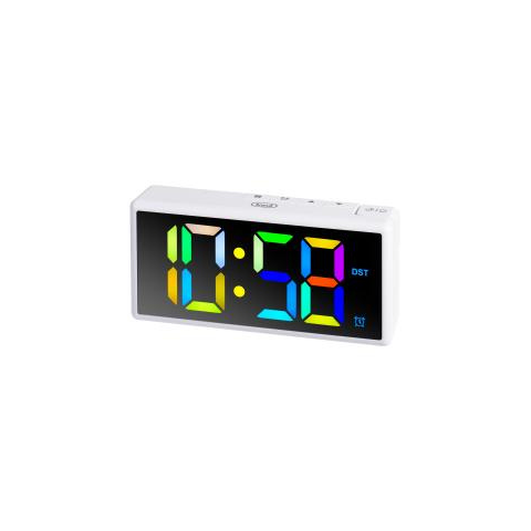 Fedezd fel a Trevi EC 886 digitális ébresztőóra eleganciáját, amely nemcsak pontos időt és dátumot mutat neked, de minden reggel színt és funkciót is visz az életedbe! A nagy méretű, multicolor LED kijelző biztosítja, hogy az időt mindig könnyedén leolvashasd, legyen szó éjszakai derengésről vagy nappali sugárzásról.