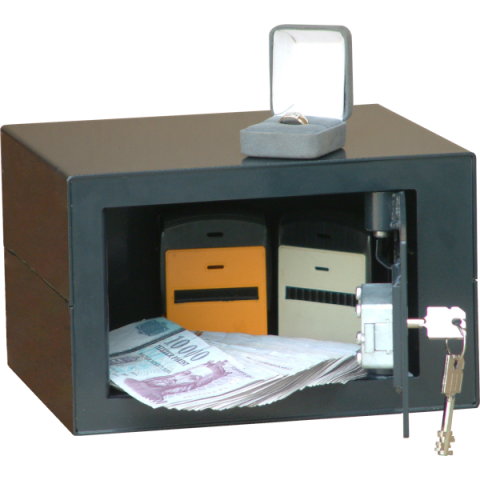 Kicsi helyigényű, könnyen elrejthető bútorszéf, biztonsági zárral
