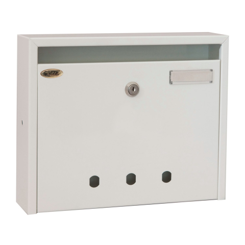 A Trezor beltéri postaláda főként társasházakba és lépcsőházakba tervezett esztétikus levélszekrény. Lefelé nyíló ajtóval, betekintő nyílásokkal, valamint biztonsági zárral rendelkezik. Mérete: 27 cm x 33 cm x 8 cm.