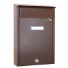 A Trezor Posta I. barna színű postaláda kétoldalas kialakításának köszönhetően kapura vagy kerítésre akár kívülről, akár belülről könnyen és egyszerűen felszerelhető. Időjárásálló, rozsdamentes anyagból készült, valamint lopásgátlóval és biztonsági zárral rendelkezik. Mérete: 34 cm x 22 cm x 9 cm.