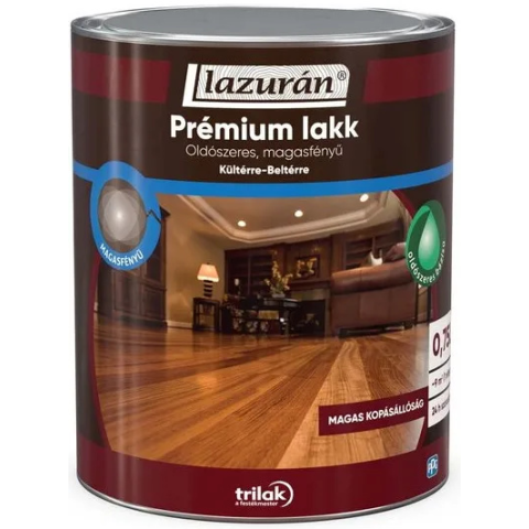 Lazurán Prémium magasfényű oldószeres kopásálló parkettlakk kültérre-beltérre, magasfényű és selyemfényű változatban. Fapadlók, hajópadlók, falépcsők, de egyéb natúr vagy pácolt kültéri és beltéri fafelületek (pl. bútorok) bevonataként alkalmazható. Egye