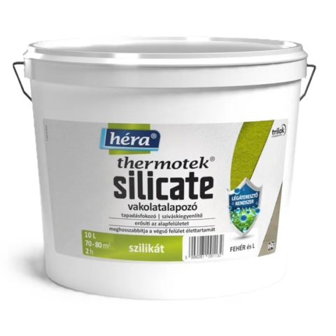 Héra Thermotek Silicate Kolor - szilikát vékonyvakolat alapozó fehér, matt, érdes felületű pigmentált alapozófesték.