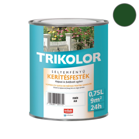 1 kép Trilak Trikolor selyemfényű kerítésfesték - babérzöld - 0,75 l