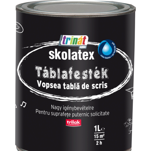 Trinát Skolatex táblafesték nagy igénybevételre, iskolatáblák, ping-pong asztalok és egyéb kül- és beltéri fafelületek környezetkímélő festéséhez.