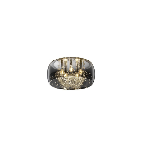 Ez az elegáns mennyezeti lámpa füstszínű üvegburájával és belső díszített üvegelemeivel lenyűgöző fényhatásokat biztosít. Különleges kialakítása modern és kifinomult atmoszférát teremt bármely enteriőrben...