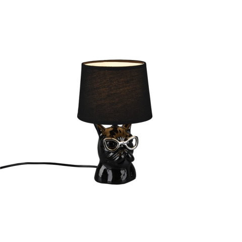 A DOSY asztali lámpa egyedi, szórakoztató stílusával bármely modern tér figyelemfelkeltő darabja lehet. A fekete kerámia lámpatest egy bulldogot ábrázol, mely karakteres és egyedi megjelenést biztosít. A fekete szövet búra elegáns kiegészítője a lámpának,..