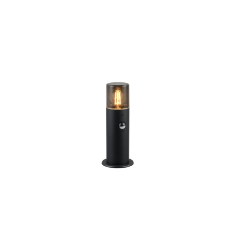 Elegáns és modern kültéri lámpa, amely fekete lámpatesttel és átlátszó, füstszínű lámpabúrával rendelkezik, így kifinomult és letisztult megjelenést kölcsönöz környezetének. Beépített mozgásérzékelője gondoskodik a praktikus és energiatakarékos működésről..
