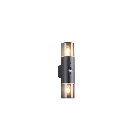 Elegáns és modern kültéri lámpa, amely fekete lámpatesttel és átlátszó, füstszínű lámpabúrával rendelkezik, így kifinomult és letisztult megjelenést kölcsönöz környezetének. Beépített mozgásérzékelője gondoskodik a praktikus és energiatakarékos működésről..