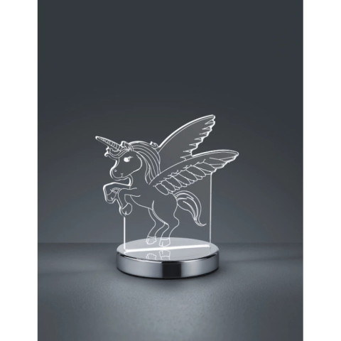 Szárnyas unikornist mintázó dekorációs asztali lámpa. - Integrált LED fényforrás - 7W - 400 lm fényerő - Szín-hőmérsékletek: 3000K / 4000K / 6500K