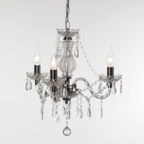 Lüster csillár 3 ágú, átlátszó akril szín. Mérete 46x150 cm. Fényforrás nélkül értékesítjük, en. hat. osztály A++ -E fényforrással kompatibilis.