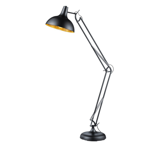 A SALVADOR állólámpa karakteres megjelenésével és állítható magasságával sokoldalú világítási megoldást kínál. Fekete fém lámpateste és belül aranyszínű búrája meleg, elegáns fényt biztosít, miközben stílusos kiegészítője lehet modern vagy ipari enteriőrö..
