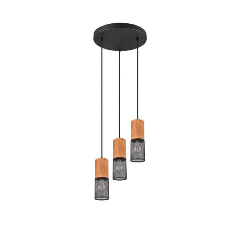 1 kép Trio Tosh fekete-natúr függesztett lámpa (TR-304330332) E27 3 izzós IP20